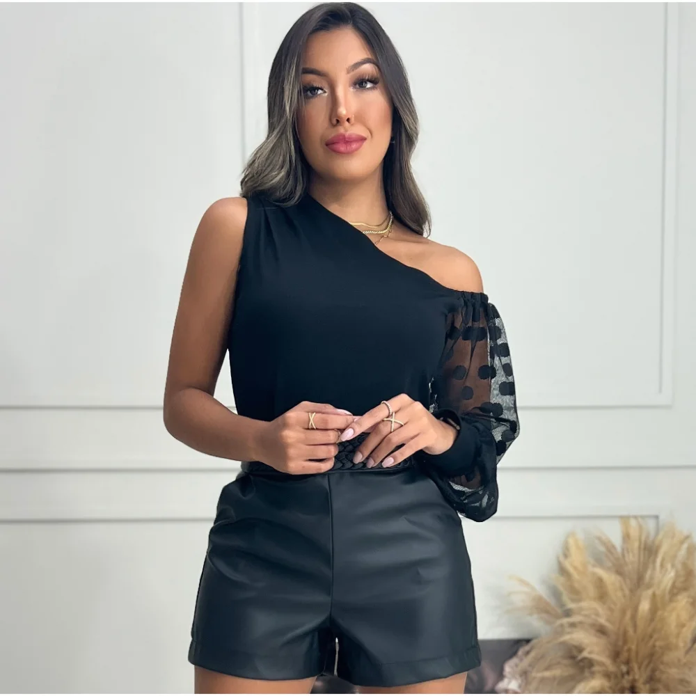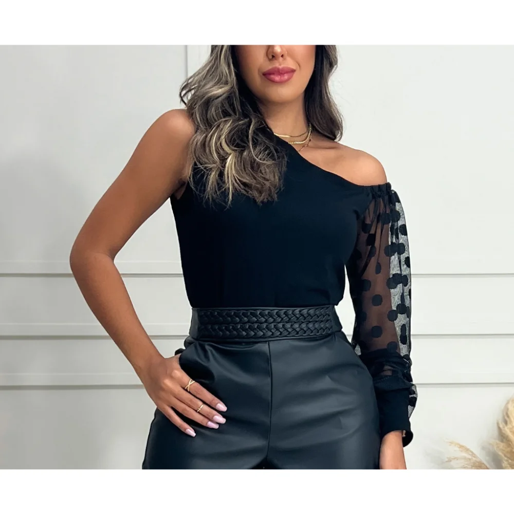 Mula Manca Blusa Feminina Manga Longa Tule Bufante Unica - Preto