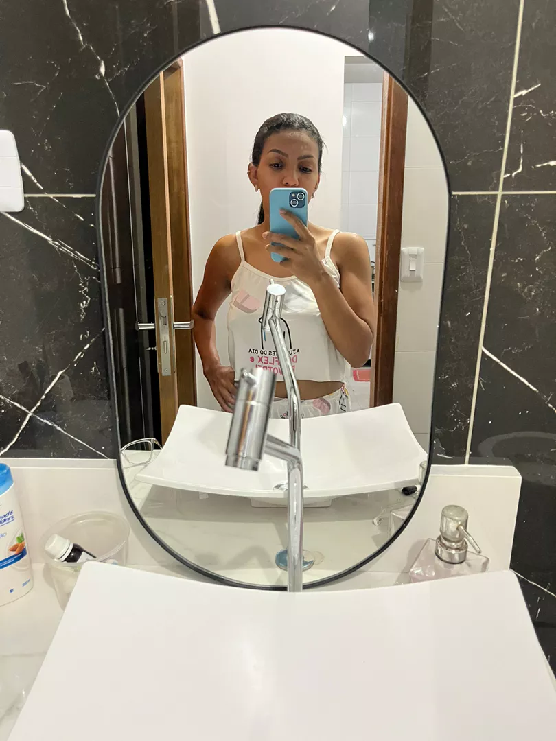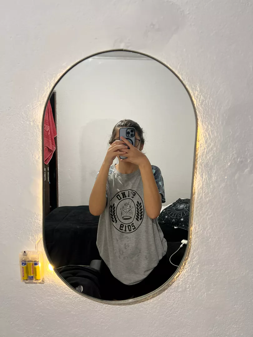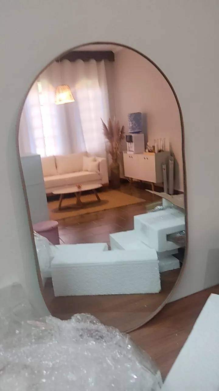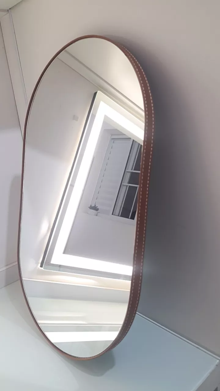 Espelho Oval 35x60cm com acabamento fino em couro sintético tamanho excelentemeio corpo
