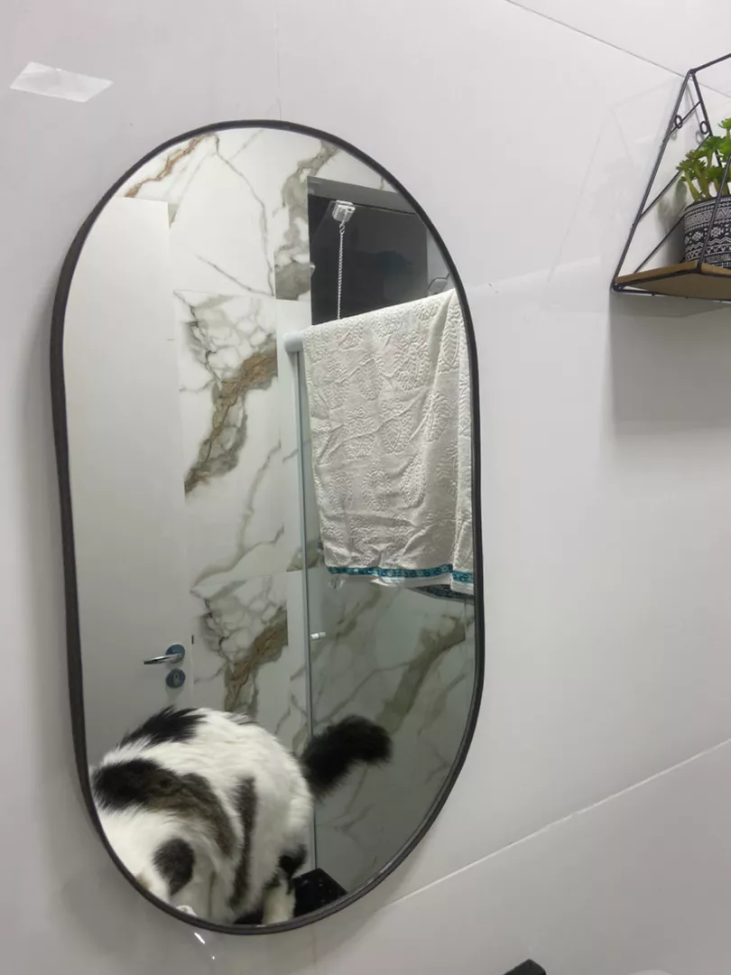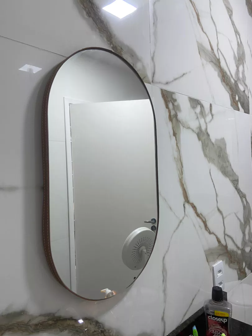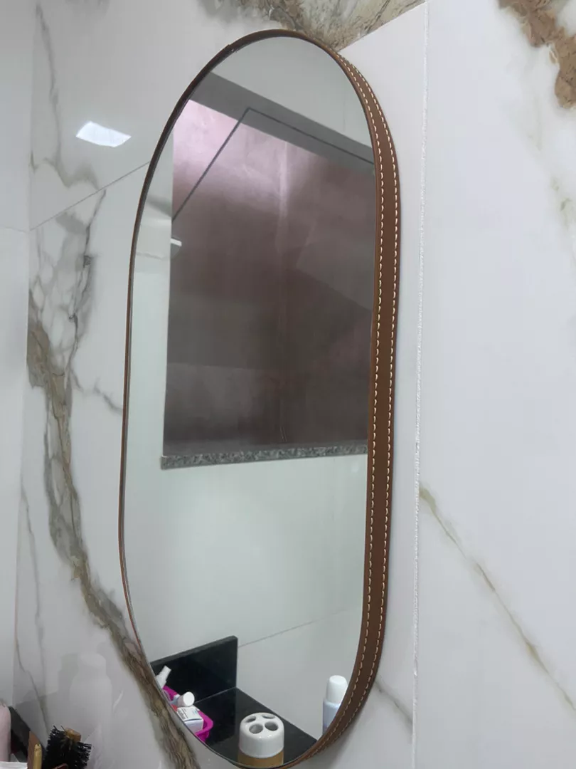 Espelho Oval 35x60cm com acabamento fino em couro sintético tamanho excelentemeio corpo