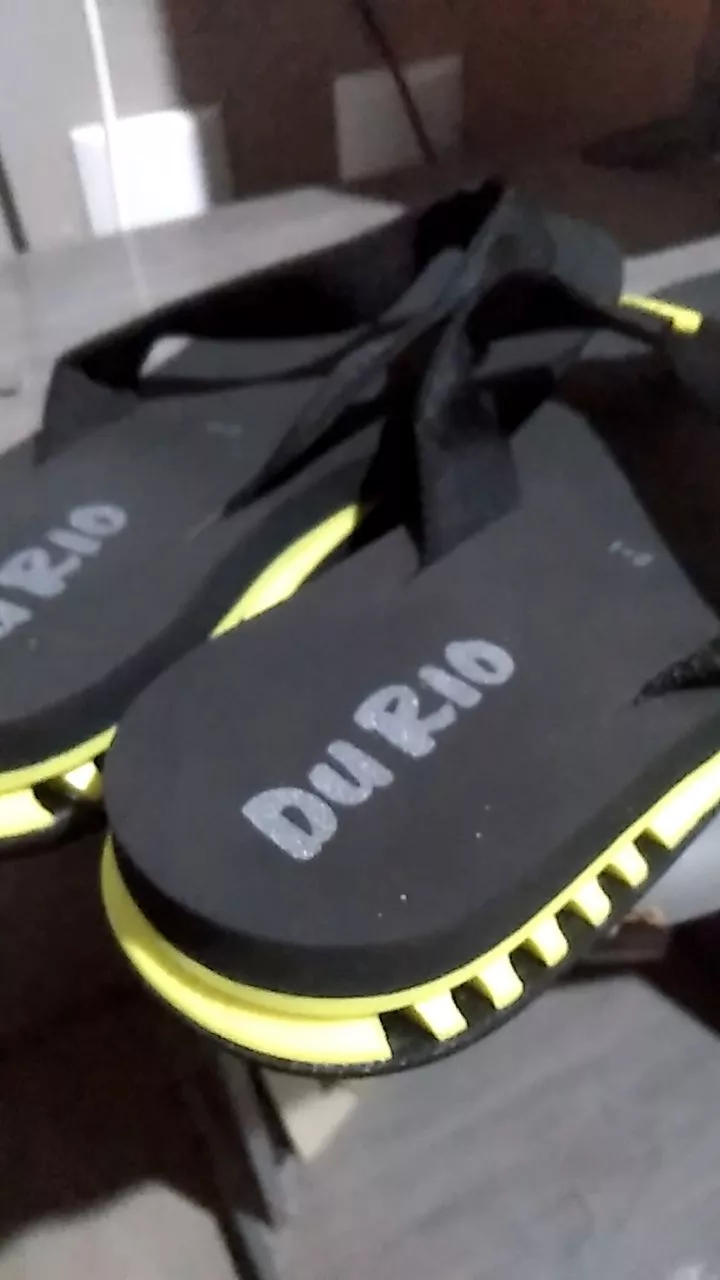 No cabedal o entrededos é feito com uma trama têxtil macia e que se adapta aos dedos suavemente Outro destaque é o solado do chinelo todo enfeitado com as ondas e as pedras portuguesas do calçadão de Copacabana feita em borracha vulcanizada e prensada material de alta qualidade e excelente aderência mesmo em pisos molhados Quando usado na praia o solado deixa uma marca bem bacana mostrando que a marca é bem detalhista na fabricação de seus produtos A bandeirinha do Brasil é um charme e mostra o orgulho da DuRio em ser uma marca brasileira