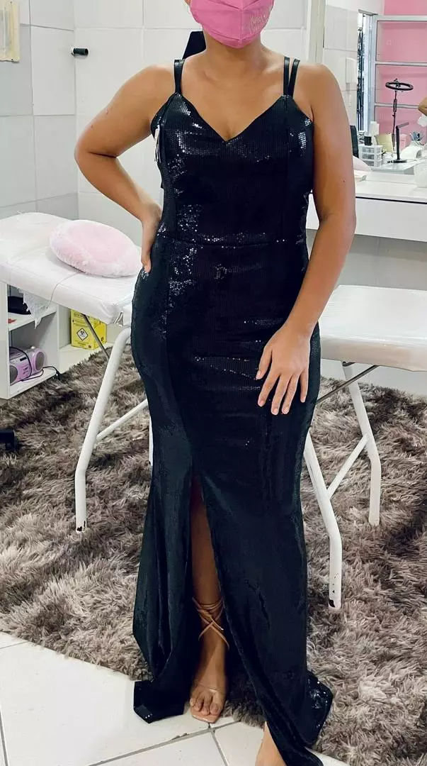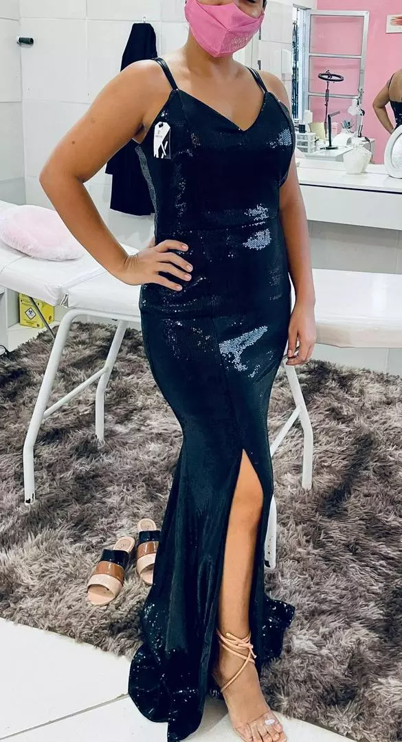 O Vestido Longo de Festa com Fenda em Paetê é ideal para ocasiões especiais como formaturas, casamentos e debutantes. Feito em paetê brilhante, possui um design elegante e moderno. A fenda dá um toque sensual ao look. Disponível na loja online da Raryel com preços baixos e promoções imperdíveis.