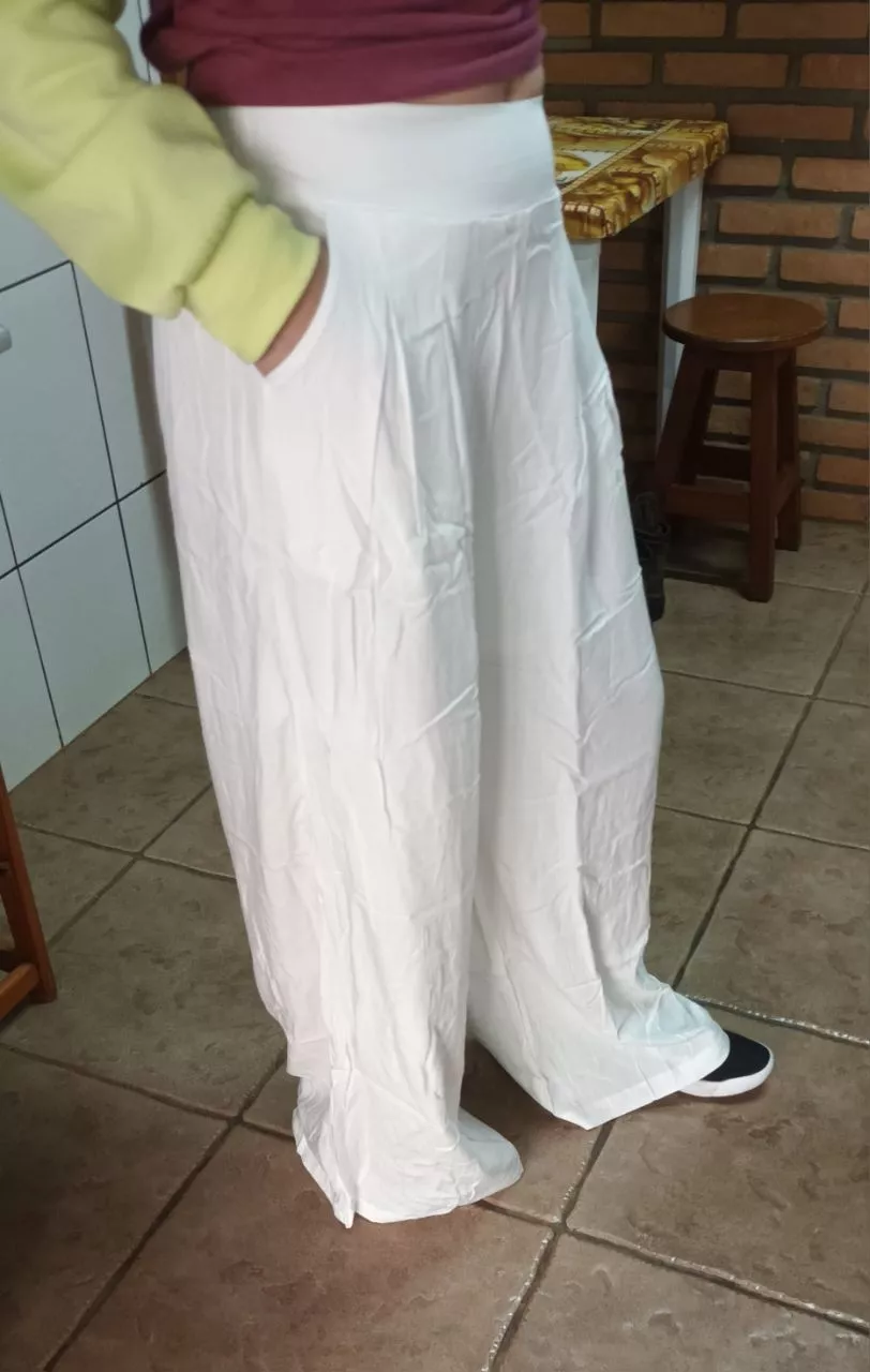 Calça Pantalona Tecido de viscolinho elástico somente na parte de trás