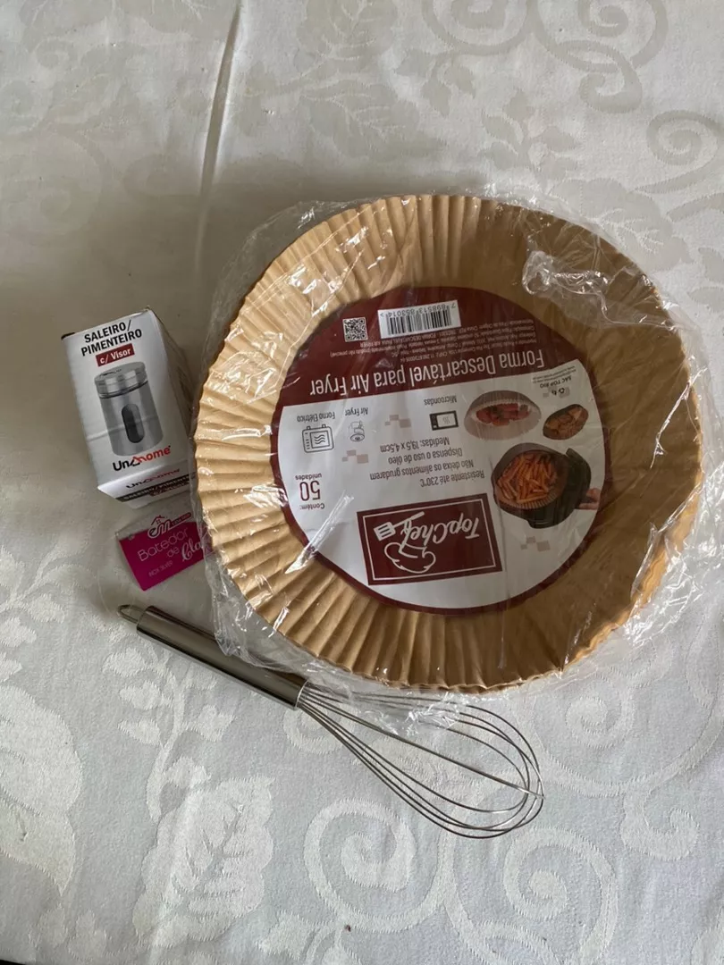 É muito fácil de usar uma vez que já vem no formato de uma forma sendo necessário apenas colocar o alimento dentro e inserir dentro da air fryer