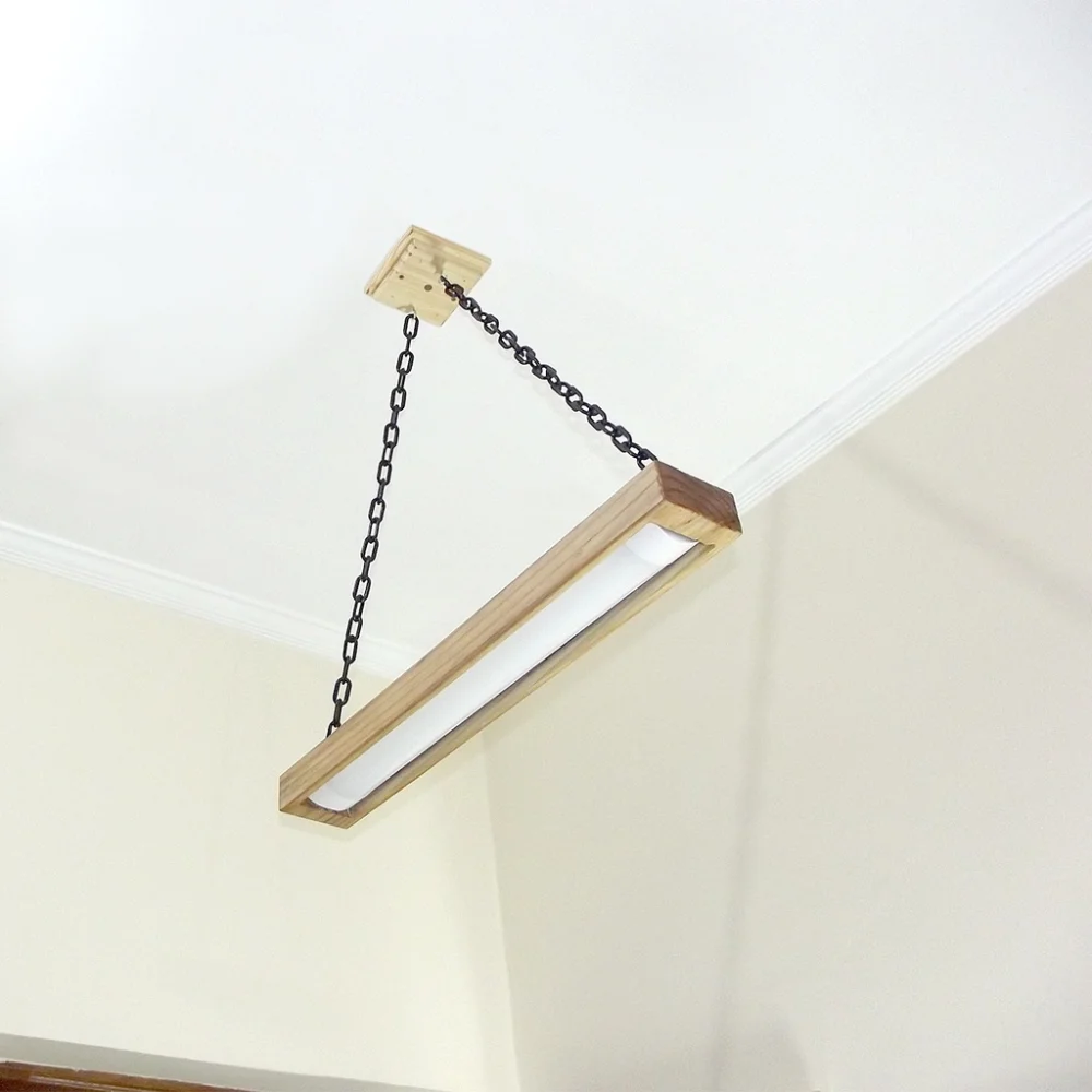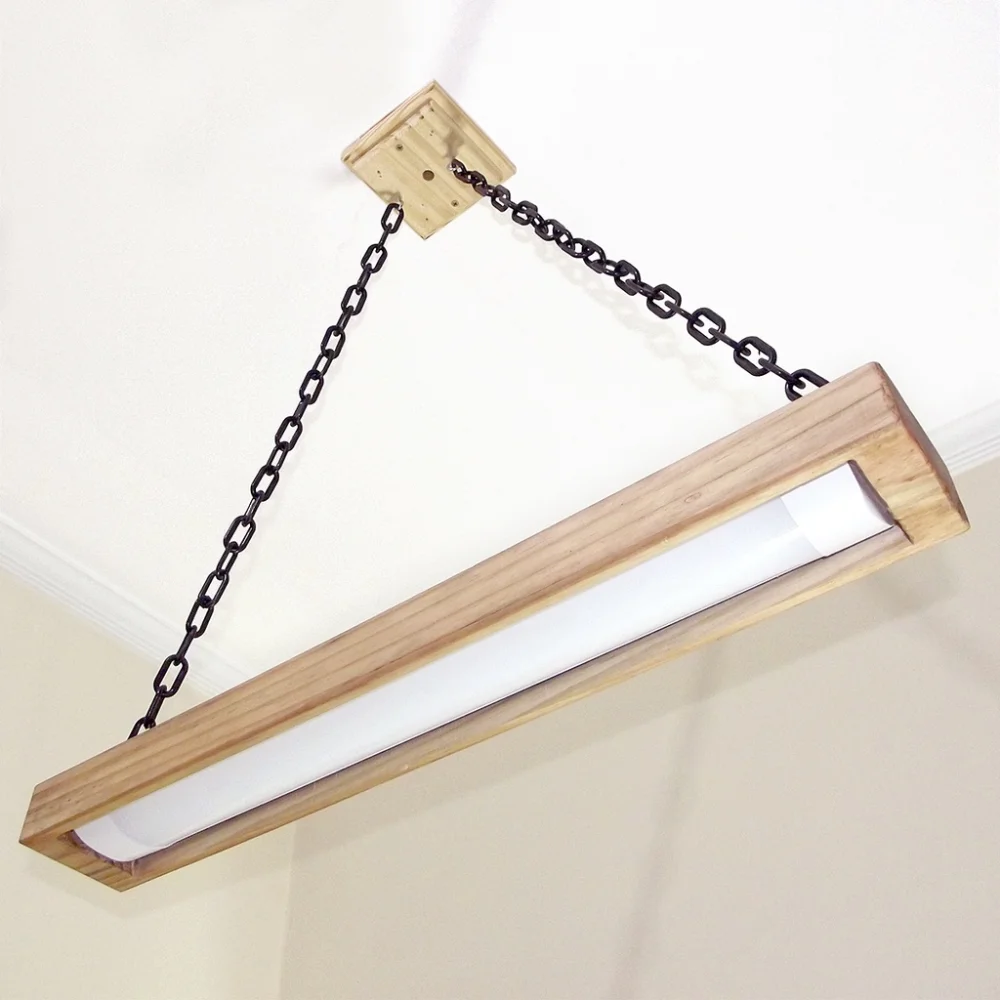 Luminária Lustre Pendente Rústico Retro Madeira 65CM COM LÂMPADA