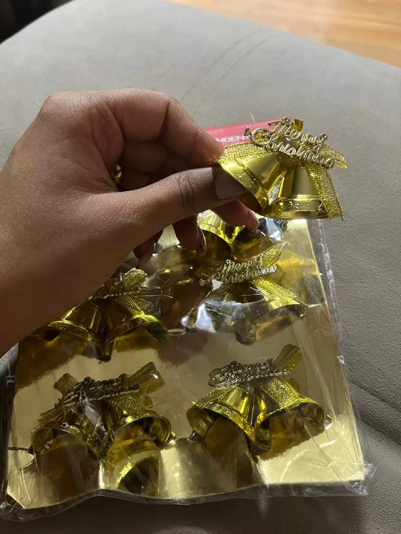 Kit com 12 Sinos Dourados com laço ideal para deixar sua árvore de natal ainda mais bonita