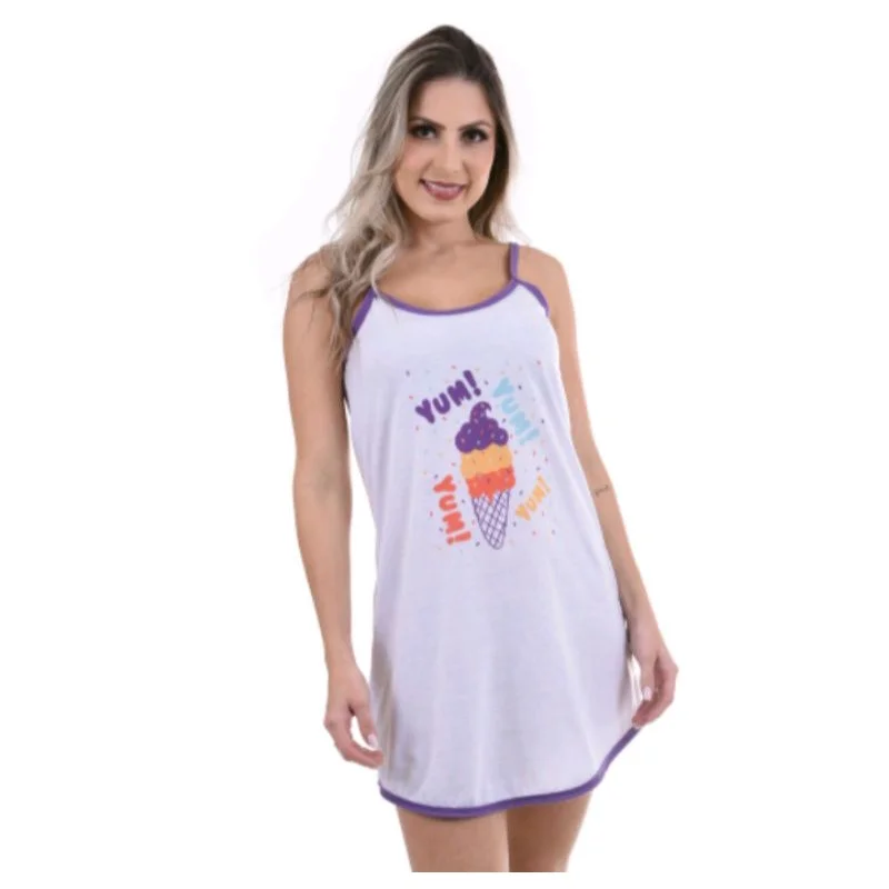 Pijama Baby Doll de malha fresquinha alcinha - Estampa variada