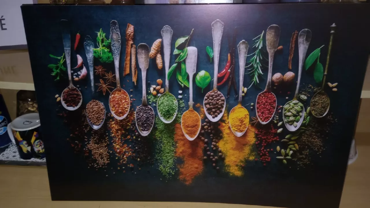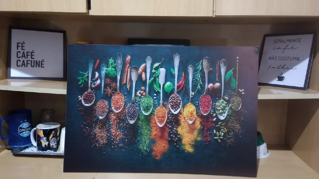 Adquira o quadro decorativo pintado com ervas e especiarias para sua cozinha. Uma peça moderna e colorida que dará um toque especial ao ambiente. Aproveite os preços baixos, promoções e descontos comprando na loja online de roupas Raryel.