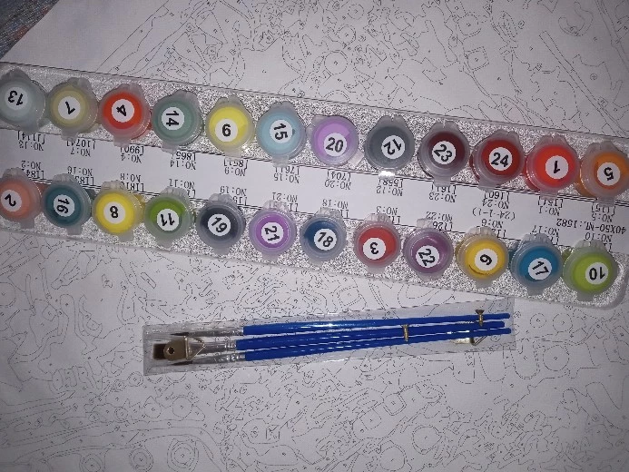 Our painting kit is a painting approach that allows everyone to paint a masterpiece The painting is divided into sections with each section marked with a number that matches a certain color Our painting kit features nontoxic acrylic paint eco friendly packaging detailed instructions set of paint brushes 3 pcs