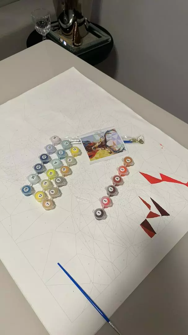 Our painting kit is a painting approach that allows everyone to paint a masterpiece The painting is divided into sections with each section marked with a number that matches a certain color Our painting kit features nontoxic acrylic paint eco friendly packaging detailed instructions set of paint brushes 3 pcs