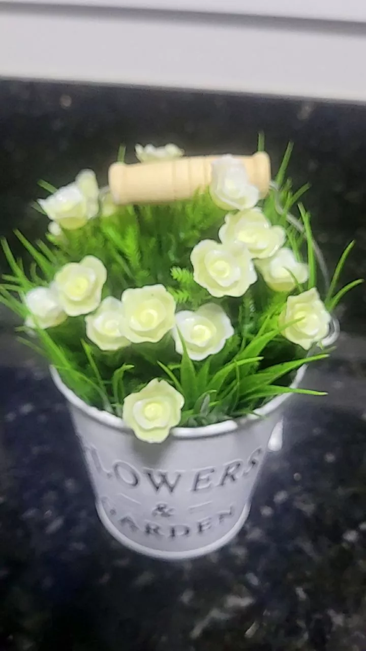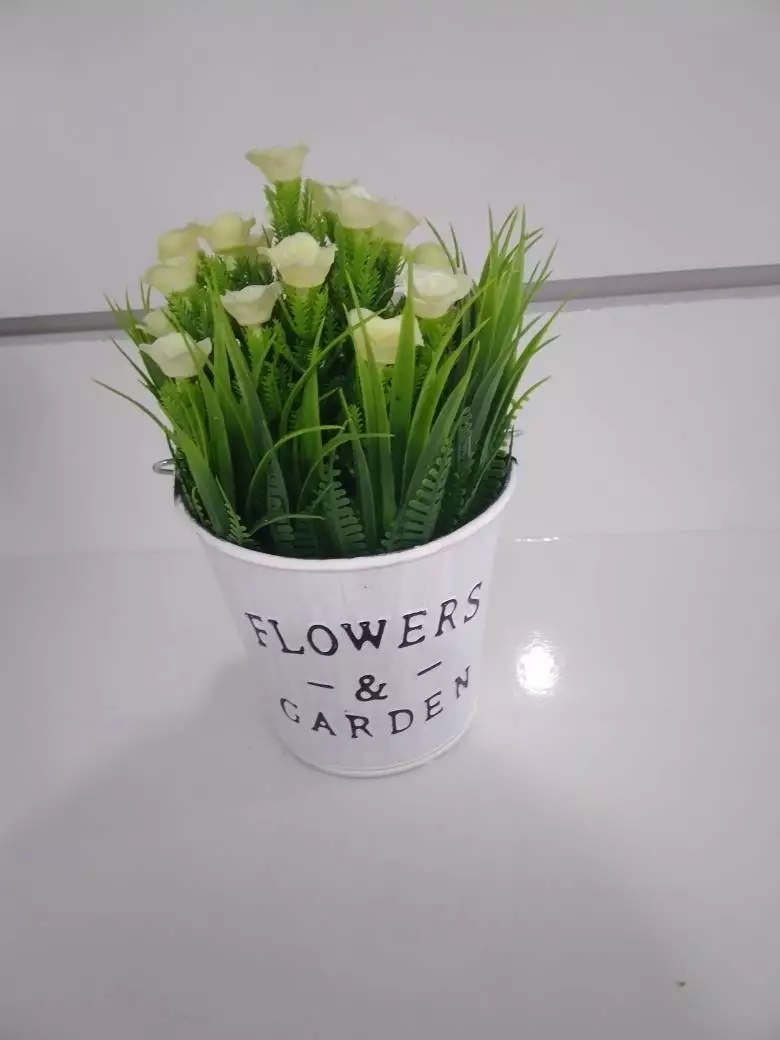 Plantinha Artificial Decorativa com Balde de Vaso e Alça - FLOR BRANCA 1 UN BALDE GRANDE