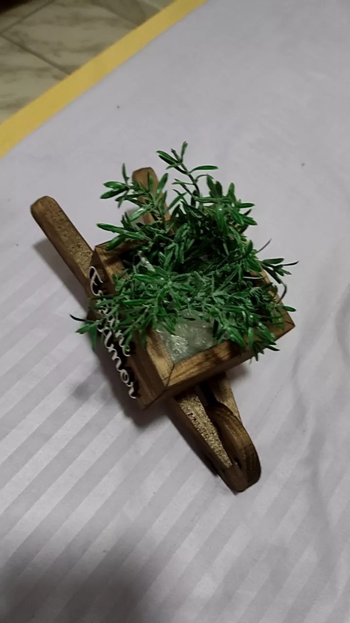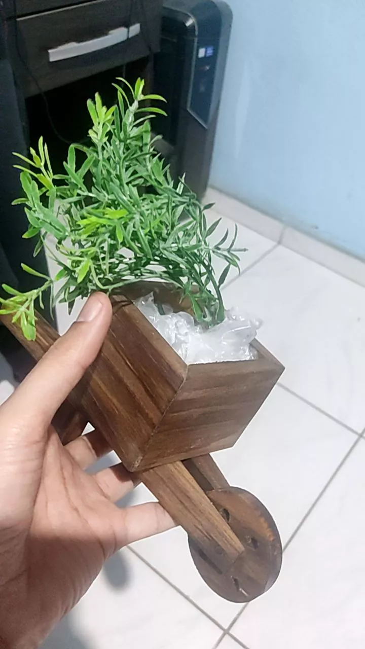 Compre o lindo vasinho de madeira estilo carriola com uma plantinha artificial para decorar sua casa. Aproveite nossos preços baixos e promoções na loja online de roupas Raryel.