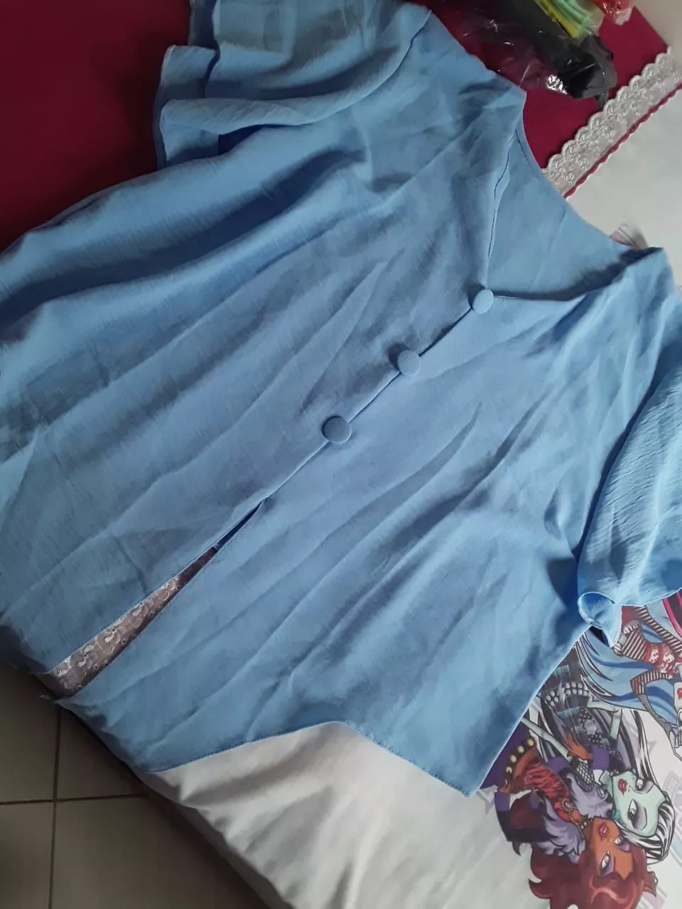 Plus Size Blusa Feminina Amarrar - Azul claro manga ¾