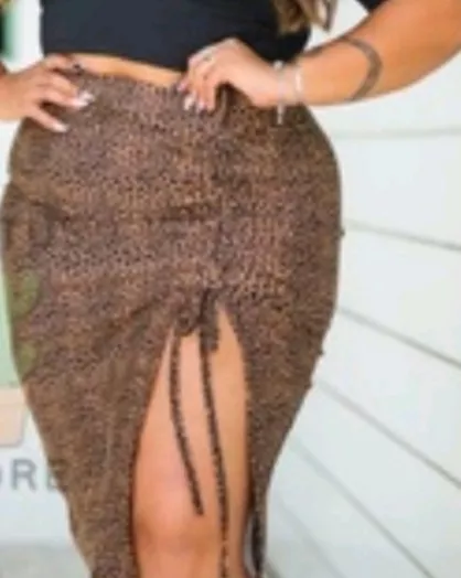 Plus Size Saia Midi Feminina com Fenda Frontal - Tecido Suplex - Onça