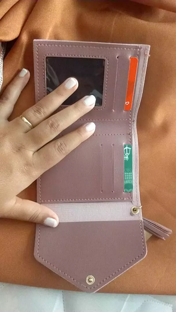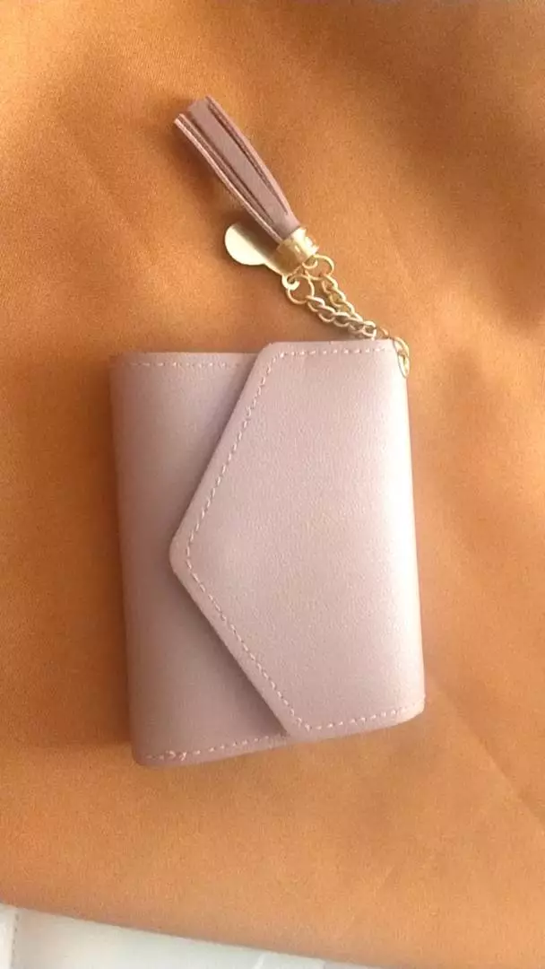 Carteira pequena de couro sintético de abotoar com treze cores para sua escolha nela voce pode por seus cartões e seu dinheiro vem com um chaveiro lindo e delicado para dar um toc chic na sua carteira uma carteira otima para ser carregada em bolsas pequenas para quem gosta de levar o básico e essencial nela