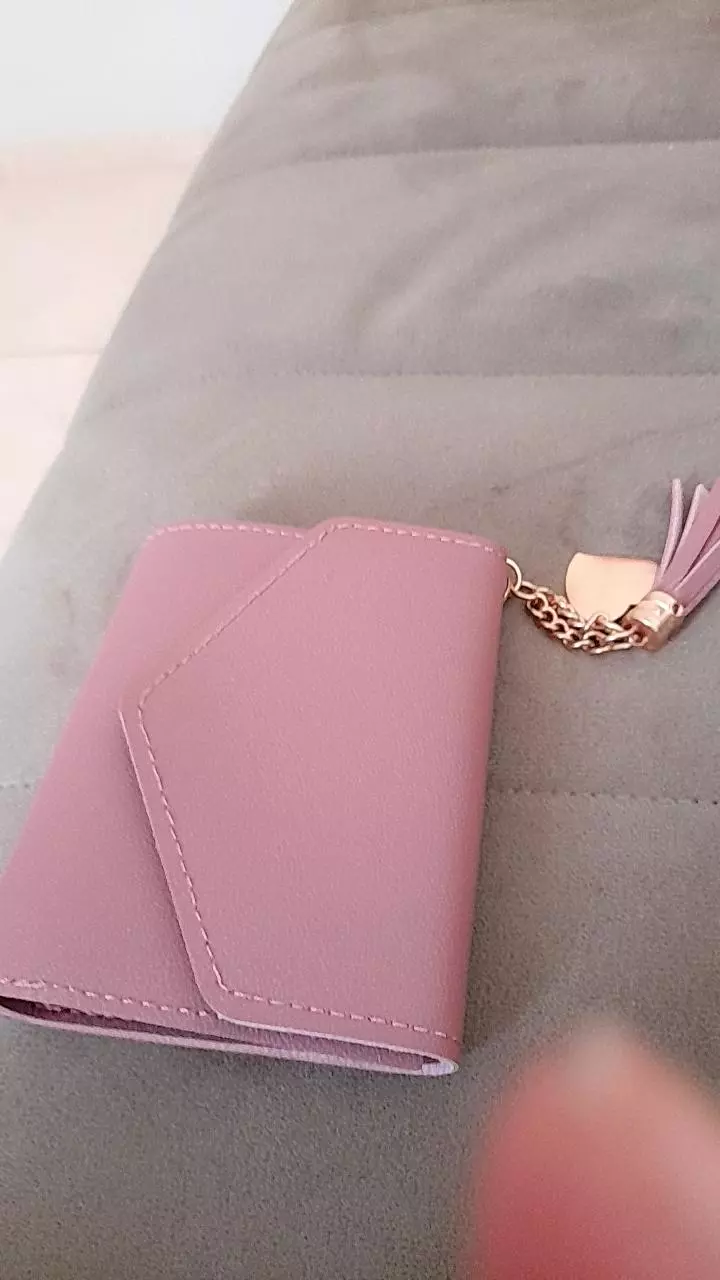 Carteira pequena de couro sintético de abotoar com treze cores para sua escolha nela voce pode por seus cartões e seu dinheiro vem com um chaveiro lindo e delicado para dar um toc chic na sua carteira uma carteira otima para ser carregada em bolsas pequenas para quem gosta de levar o básico e essencial nela