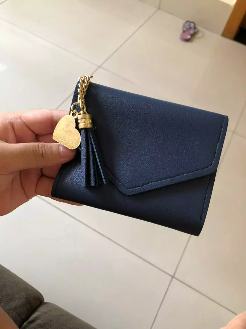 Carteira pequena de couro sintético de abotoar com treze cores para sua escolha nela voce pode por seus cartões e seu dinheiro vem com um chaveiro lindo e delicado para dar um toc chic na sua carteira uma carteira otima para ser carregada em bolsas pequenas para quem gosta de levar o básico e essencial nela