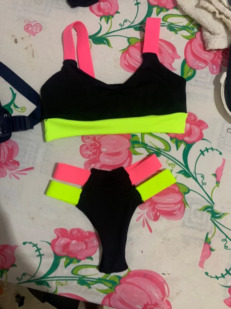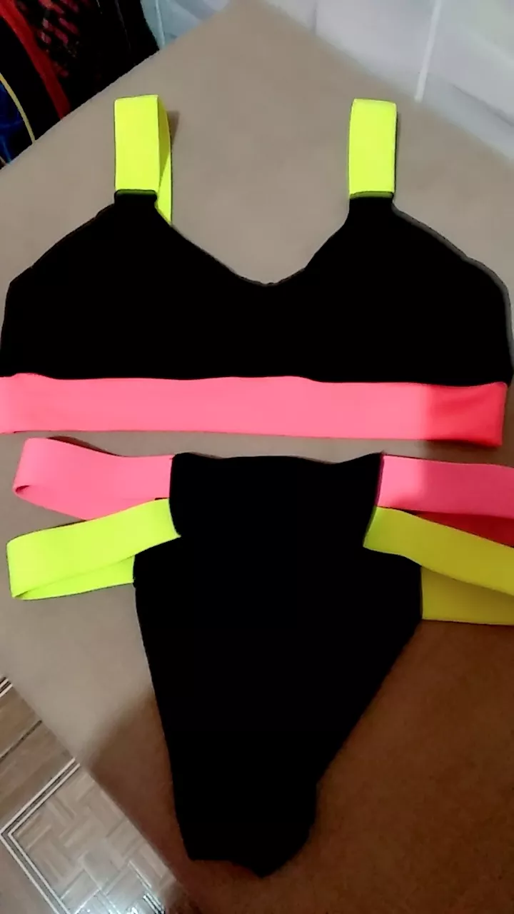 Promoção Biquíni Neon Luxo Blogueira - Super Lindo - PRETO NEON ROSA E VERDE
