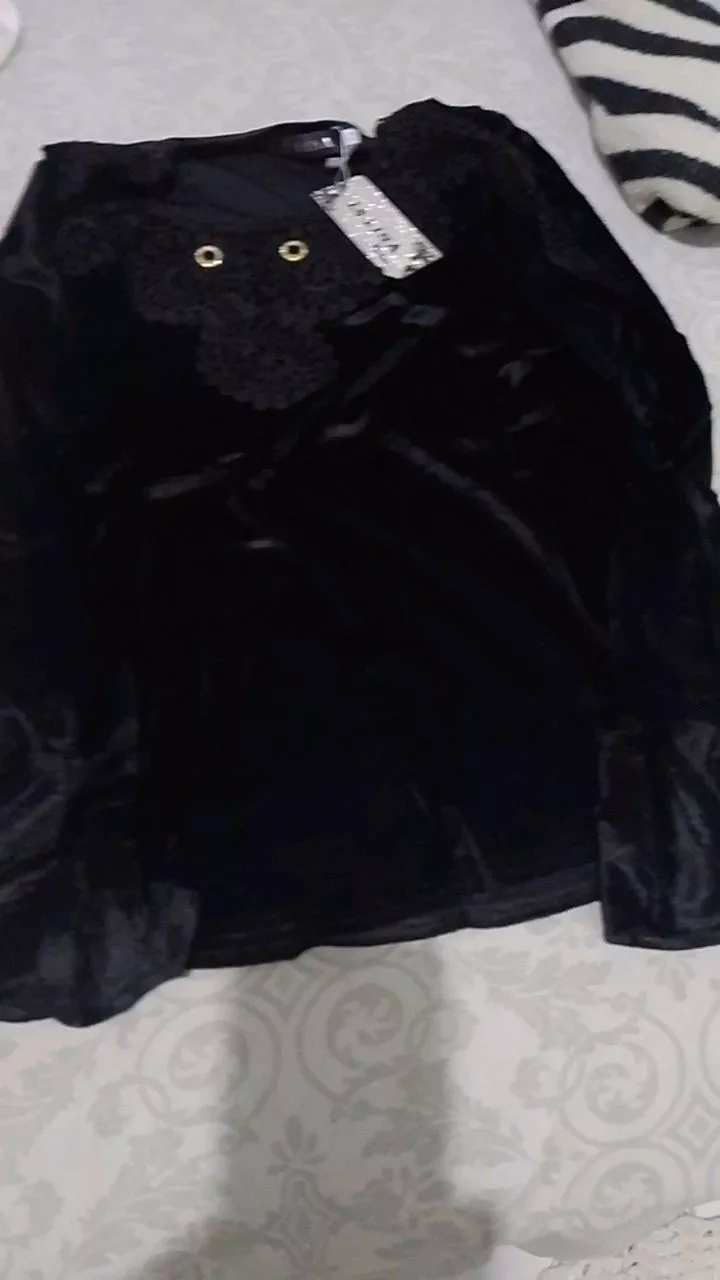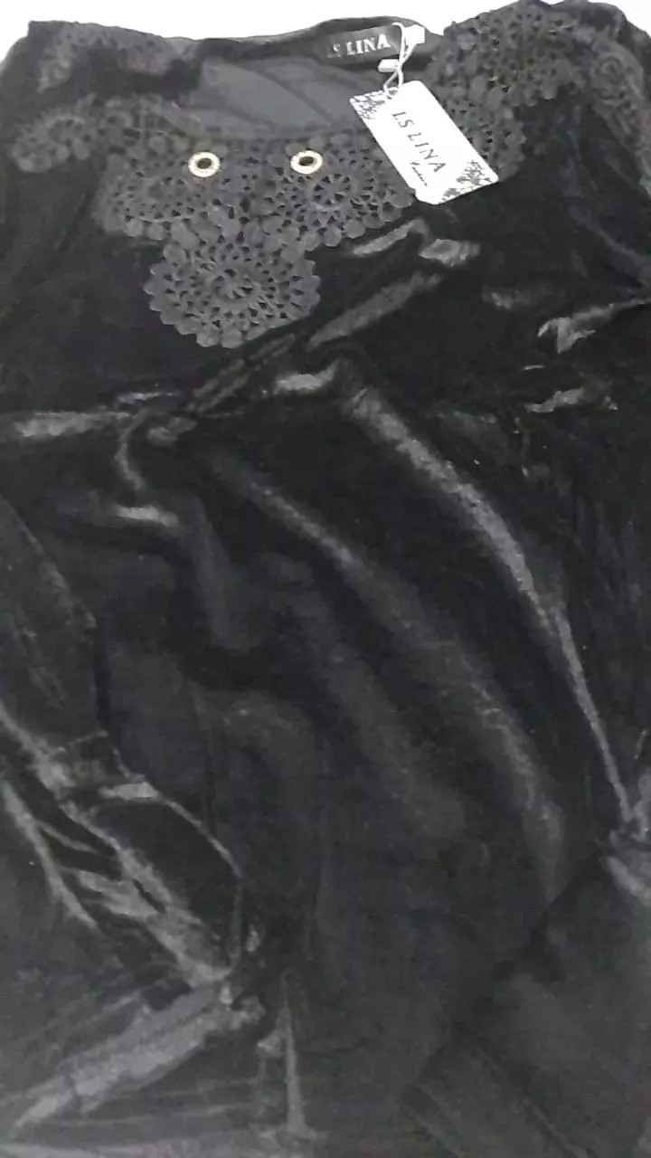 Compre a Blusa de Veludo Manga Longa Feminina com Renda Colar Aleatório em promoção na loja online da Raryel. Tecido de veludo com elastano, modelo W2027/2025. Aproveite preços baixos e descontos!