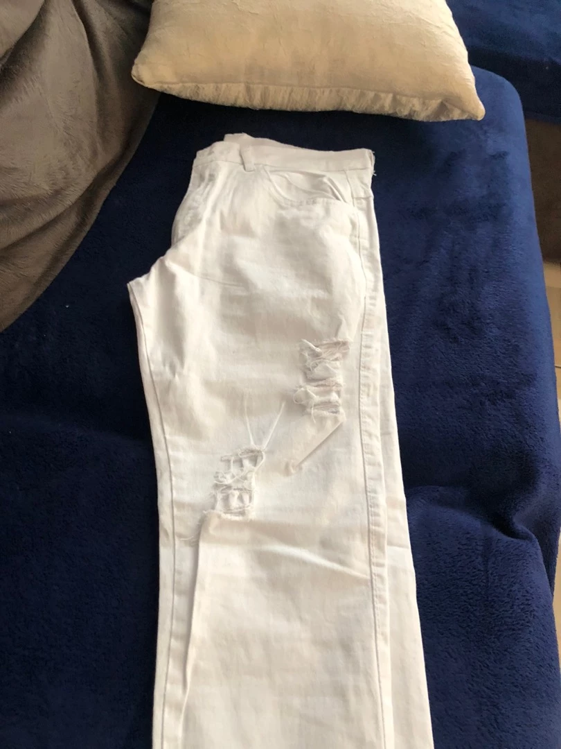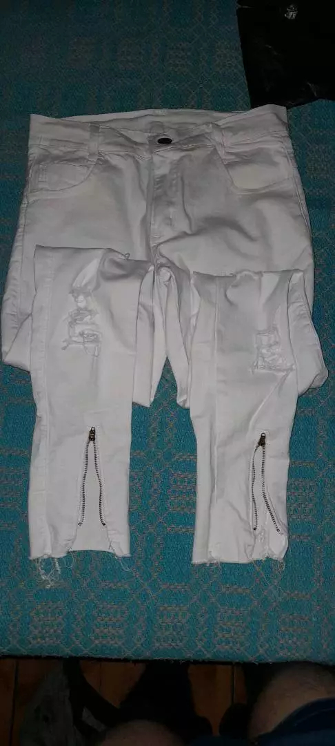 Detalhes adicionais modelo cigarrete destroyed zíper e bolsos