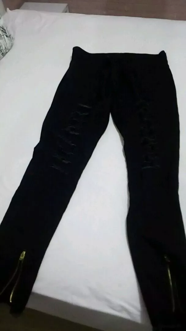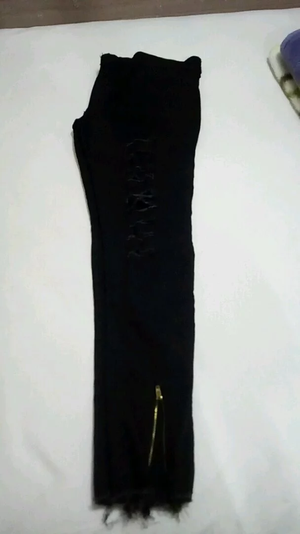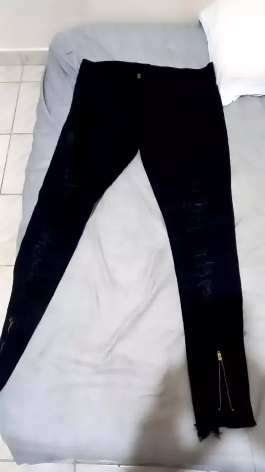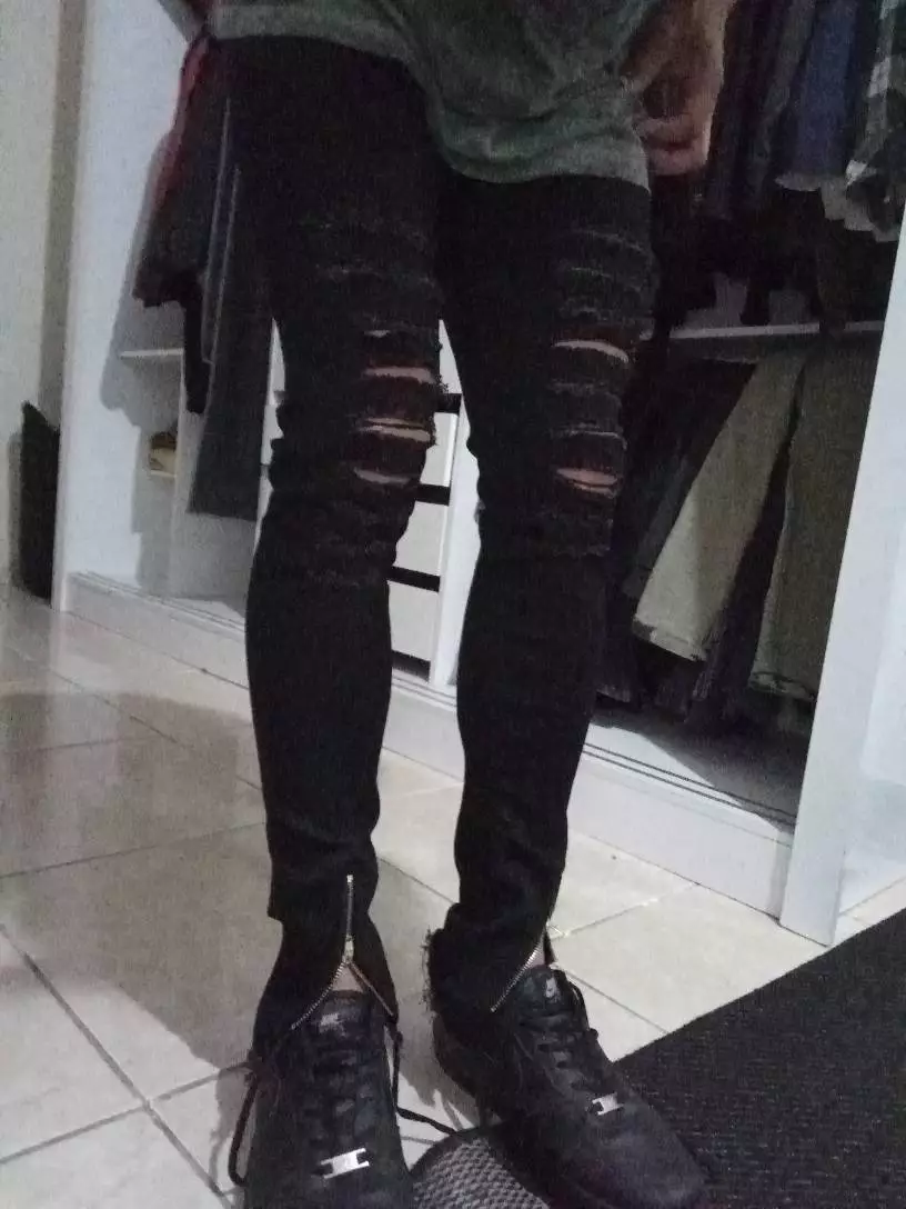 Atributos Calça na cor preta Rasgada em estilo destroyed em ambas as pernas Com Zíper na barra dando um toque diferenciado