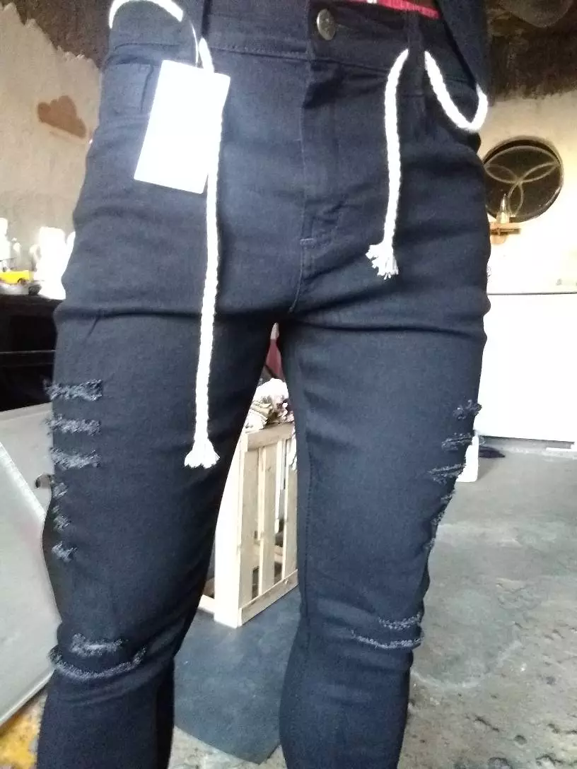 1 Calça Jeans Masculina Preto Rasgada Com Cordão