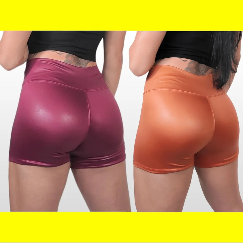 Promoção Shorts Feminino Curto Liso Cirrê Cós Alto para Academia Fitness - Laranja