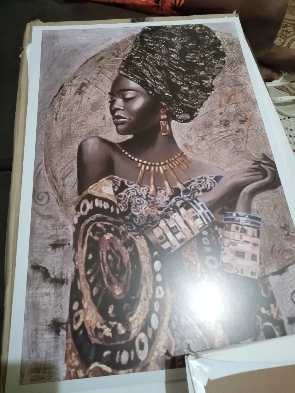Compre o quadro decorativo Mulher Africana de luxo para sala ou quarto na Raryel. Com medidas de 110x80cm, traz elegância e estilo para sua decoração. Aproveite nossos preços baixos e promoções!