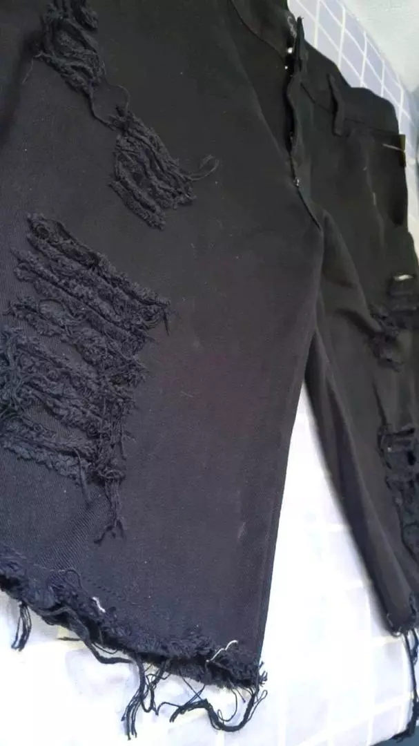 Rasgado 100% Algodão Bermuda Jeans Sarja Masculino - SKY rasgado#2