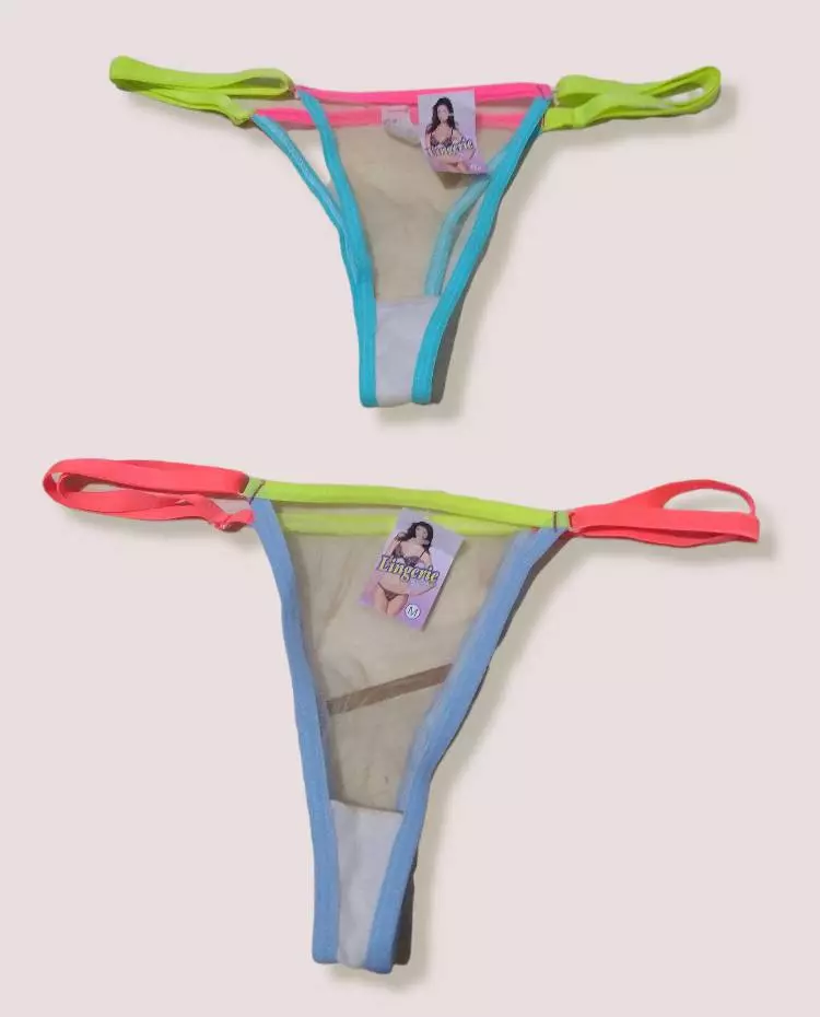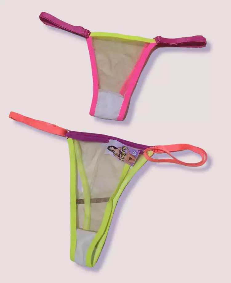 Compre o Kit 10 Calcinha Tanga Neon Tule Colorida Sexy Bicolor com Regulagem na loja online de roupas Raryel. Aproveite preços baixos, promoções e descontos exclusivos. Adicione estilo e sensualidade ao seu guarda-roupa!