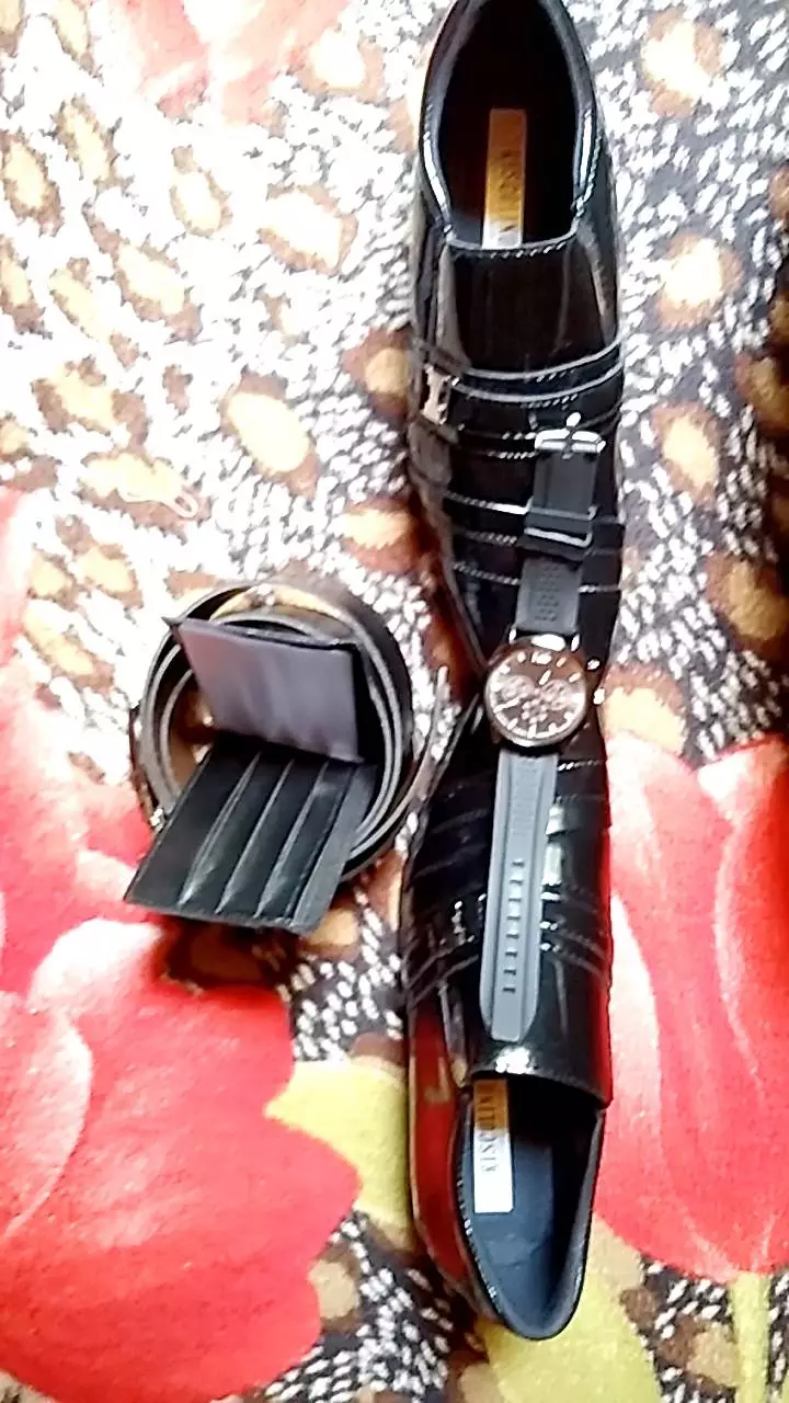 Compre o kit completo com Relógio de Ponteiro, Cinto, Carteira e Sapato Social Masculino Verniz na loja online Raryel. Aproveite preços baixos, promoções e descontos exclusivos!