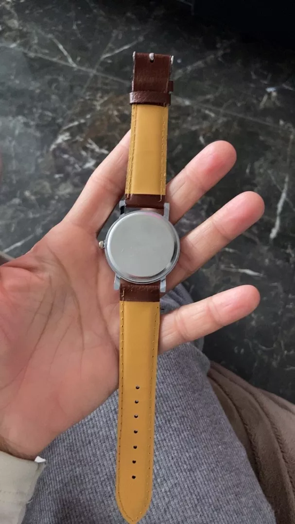Faixa em couro faux de alta qualidade e estojo em aço inox