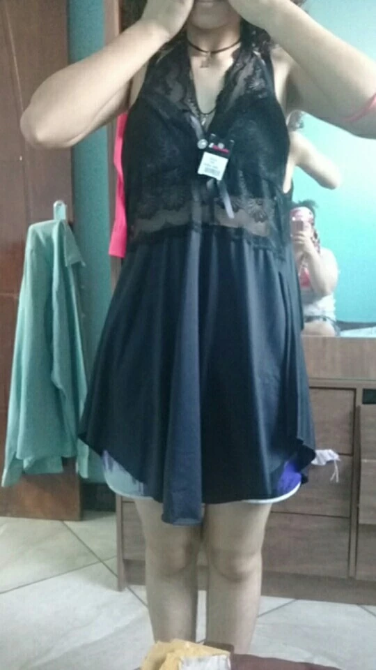 Camisola confeccionada em microfibra e renda e modelagem com efeito sensual