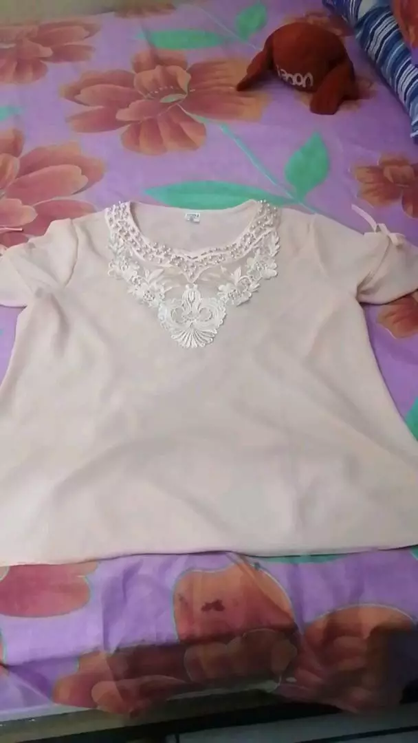 Renda Crepe Blusa Manga Curta Feminina Evangélica - Pink