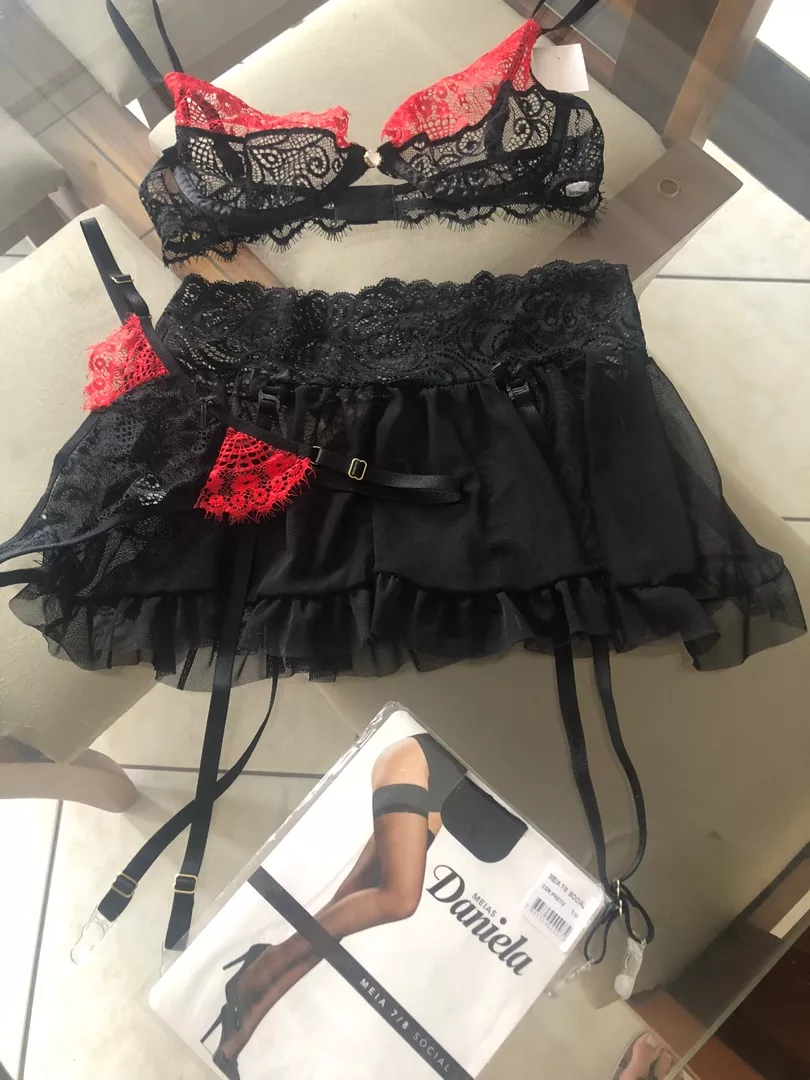 Compre o Conjunto Lingerie Renda Neon com meia 7/8 e saia sexy de liga removíveis na loja online Raryel. Aproveite preços baixos, promoções e descontos exclusivos.