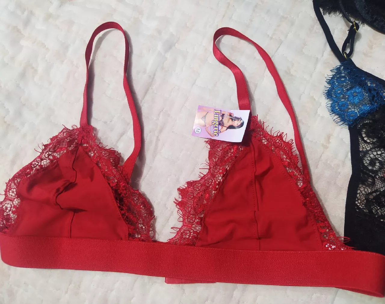 Confeccionado em renda esse conjunto é composto por um sutiã sem bojo em Renda com aro sem forro fecho traseiro e alças finas reguláveis A calcinha fio também confeccionada em renda possui tiras reguláveis trazendo charme e sensualidade para a peça