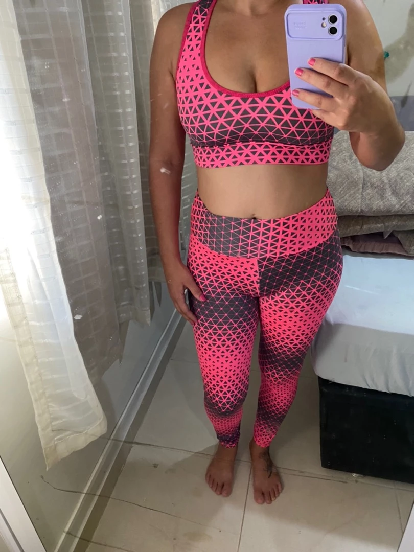 Compre o Conjunto Fitness Feminino de Top e Calça Legging na loja online Raryel. Escolha a cor que mais combina com você e arrase nos treinos. Aproveite nossos preços baixos e promoções!