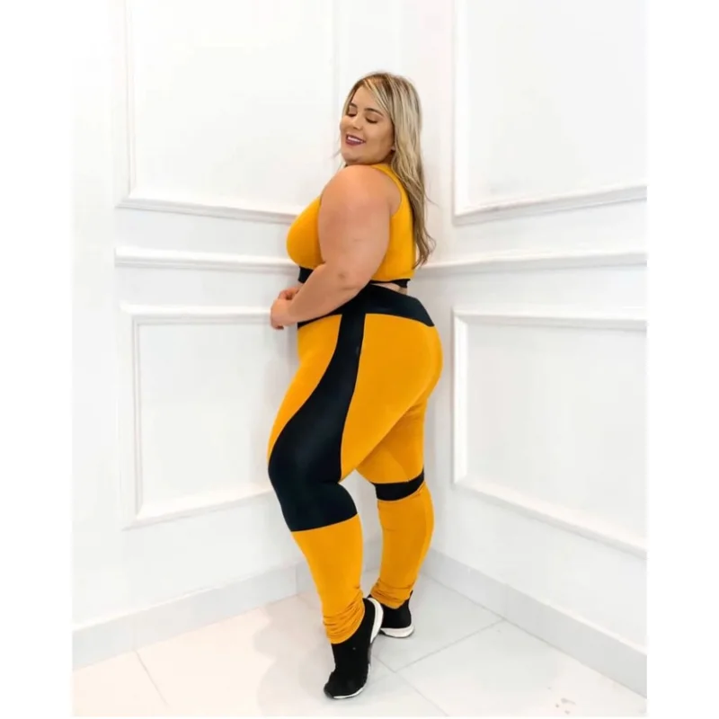 Compre na loja online Raryel o conjunto fitness plus size, composto por calça legging e top. Ideal para treinos na academia, oferece conforto e estilo para mulheres com tamanhos maiores. Aproveite nossos preços baixos e promoções!