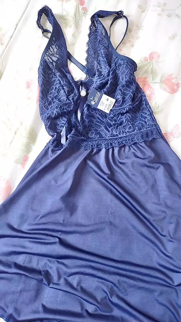 Camisola confeccionada em microfibra e renda e modelagem com efeito sensual
