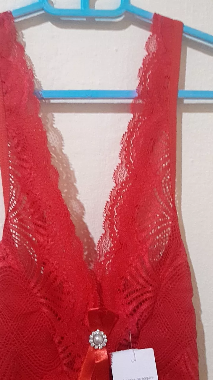 Busto com forro em microfibra e encapado com renda que vai da alça na parte da frente até abaixo do busto
