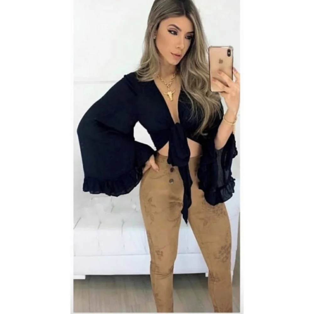 Compre a roupa feminina Cropped Blusa Manga Flare Babado na loja online Raryel. Aproveite preços baixos, promoções e descontos exclusivos. Peça já!