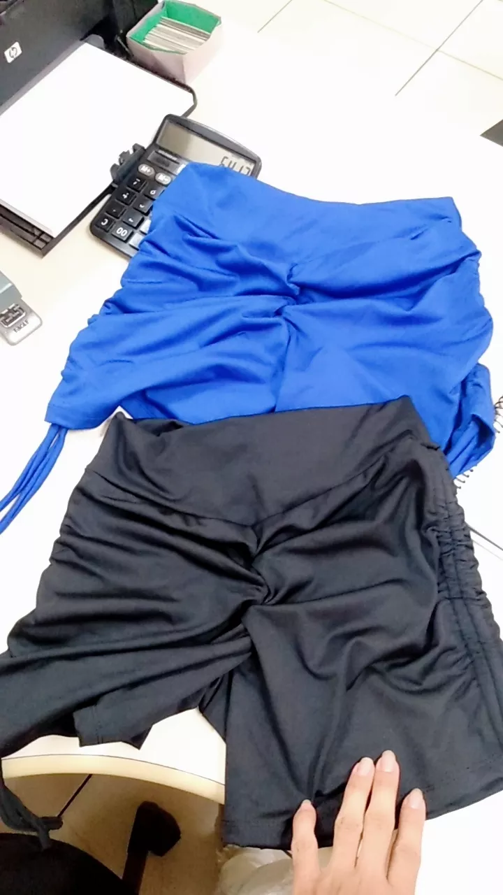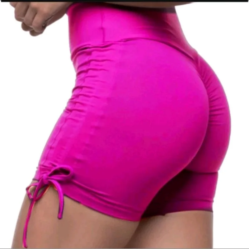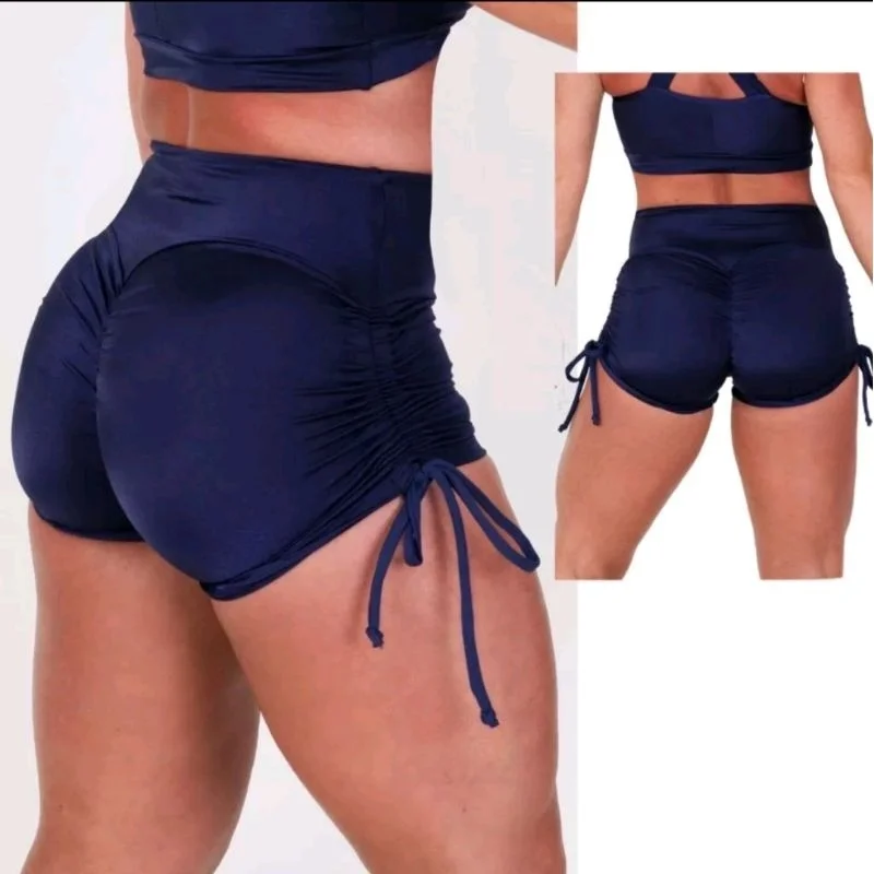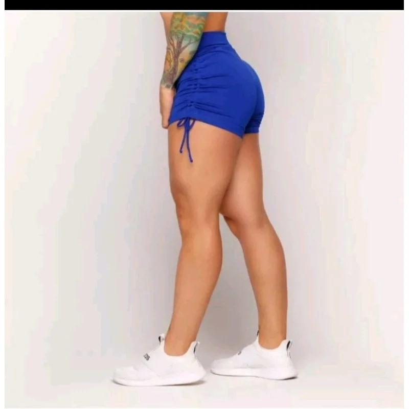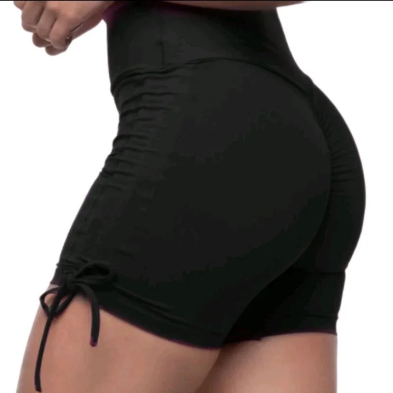 Short modelo empina bumbum com pregas na parte de tras cós alto anatômico e regulagem de amarração nas laterais que permite adaptar o comprimento de acordo com o seu desejo