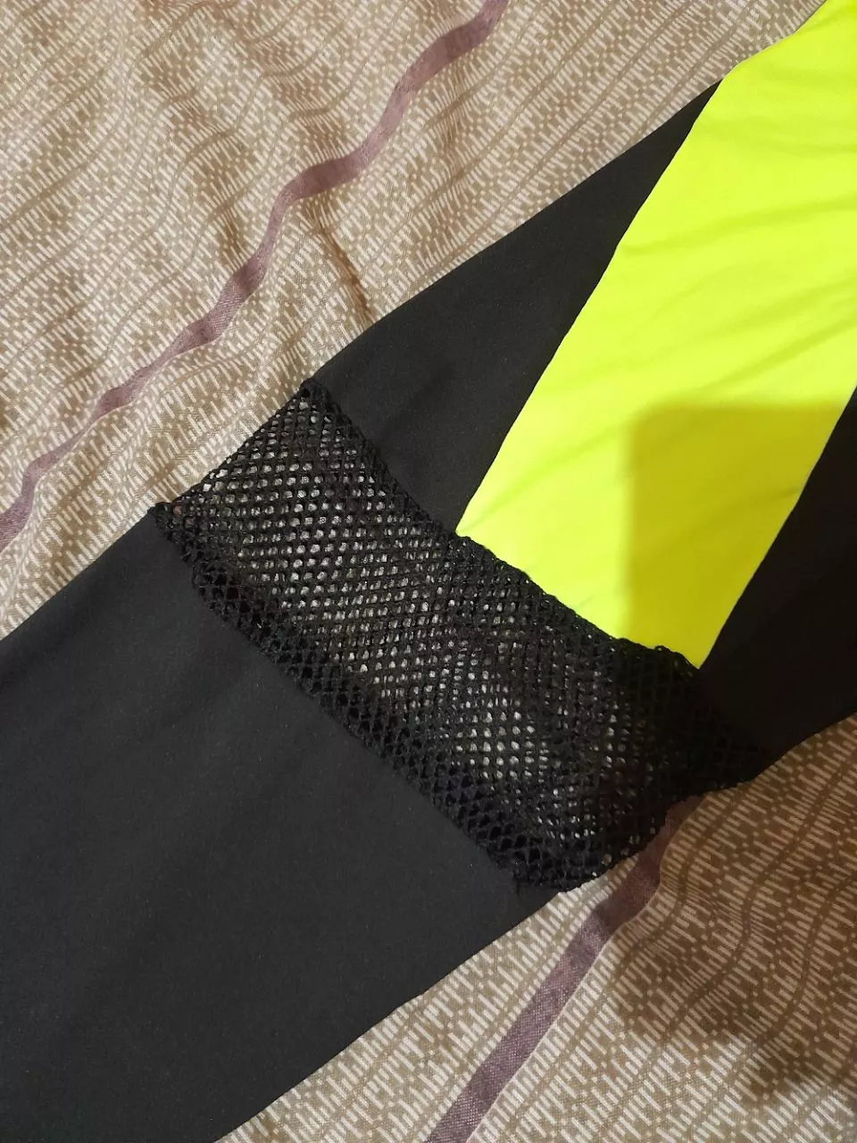 Calça Legging feminina com lindo detalhe de tela dry próximo ao joelho