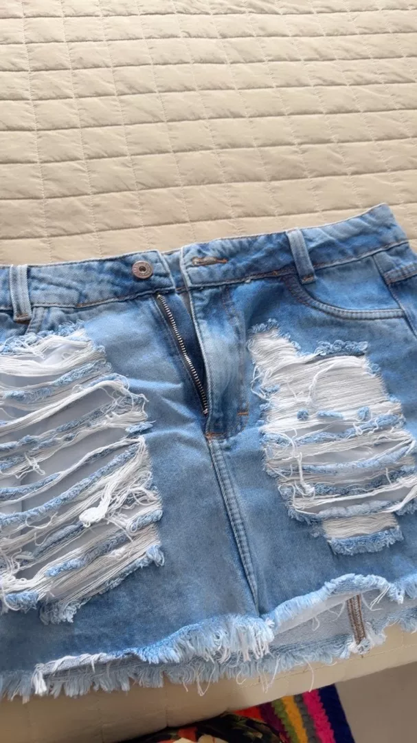 Compre a Saia Destroyed Jeans Feminina Cintura Alta Hot Pants na Raryel, com preços baixos e descontos incríveis. Aproveite nossas promoções!