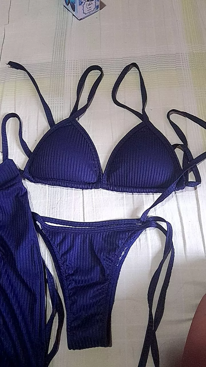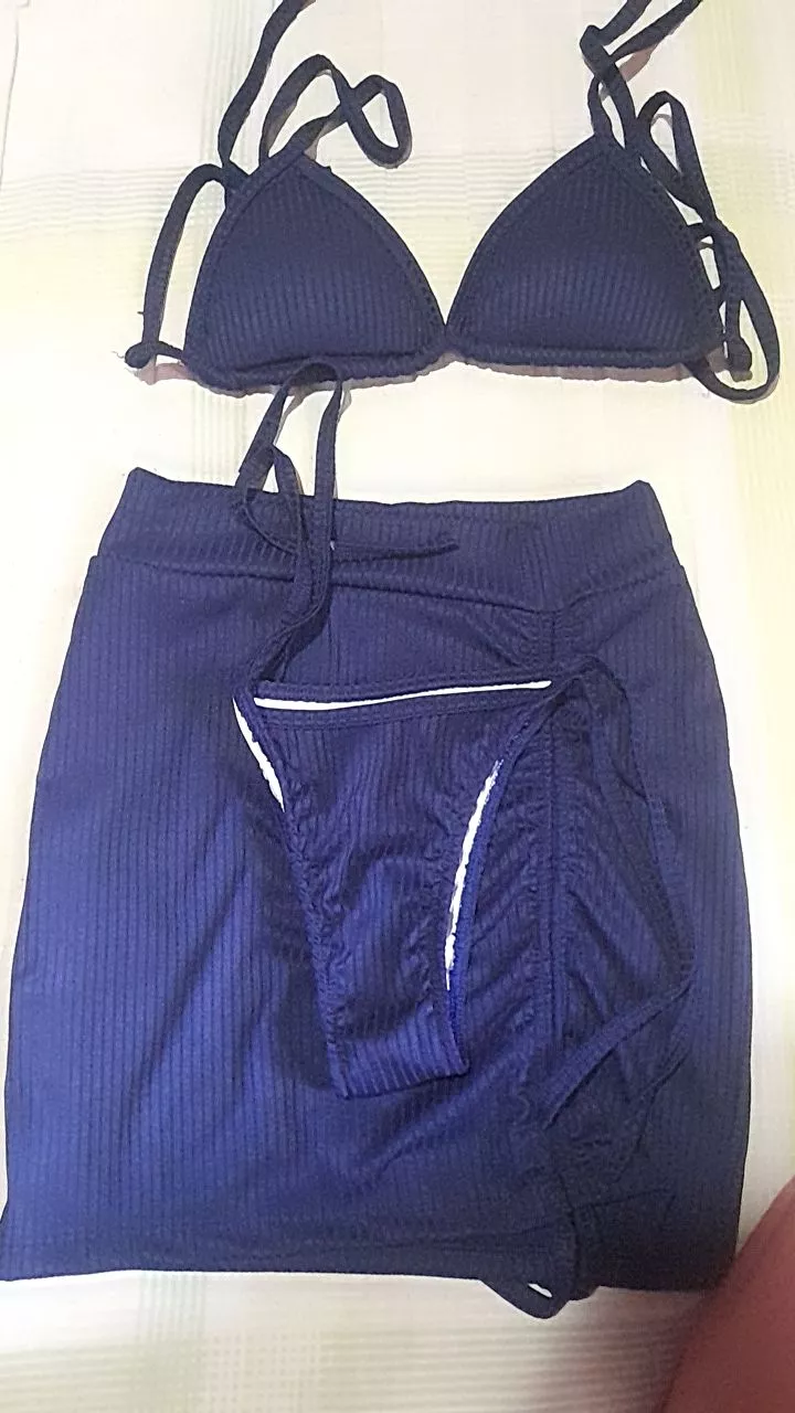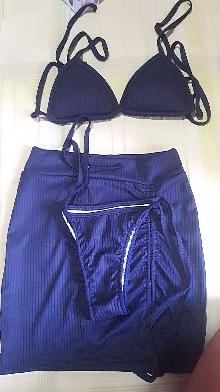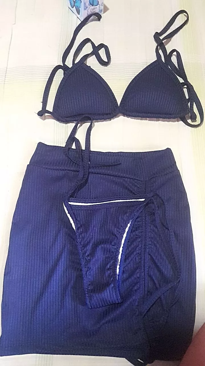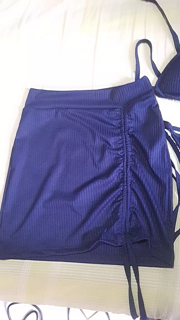 O biquíni e saia drapeada podem ser encontrados em diversas cores