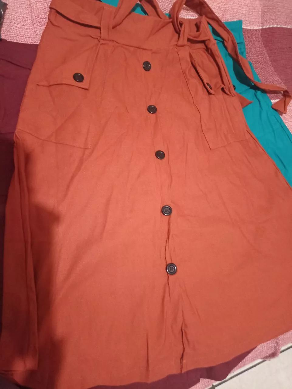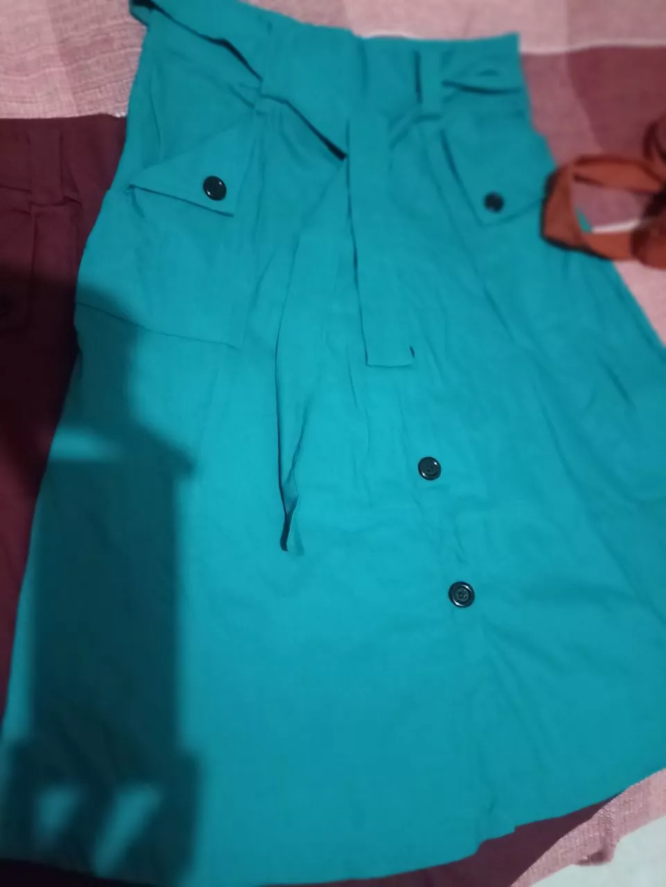 Saia evase com cinto e botões falsos em bengaline - Turquesa