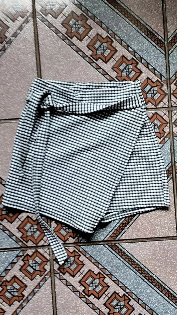 Saia Feminina Curta Malha Crepe com Laço Frontal - Xadrez