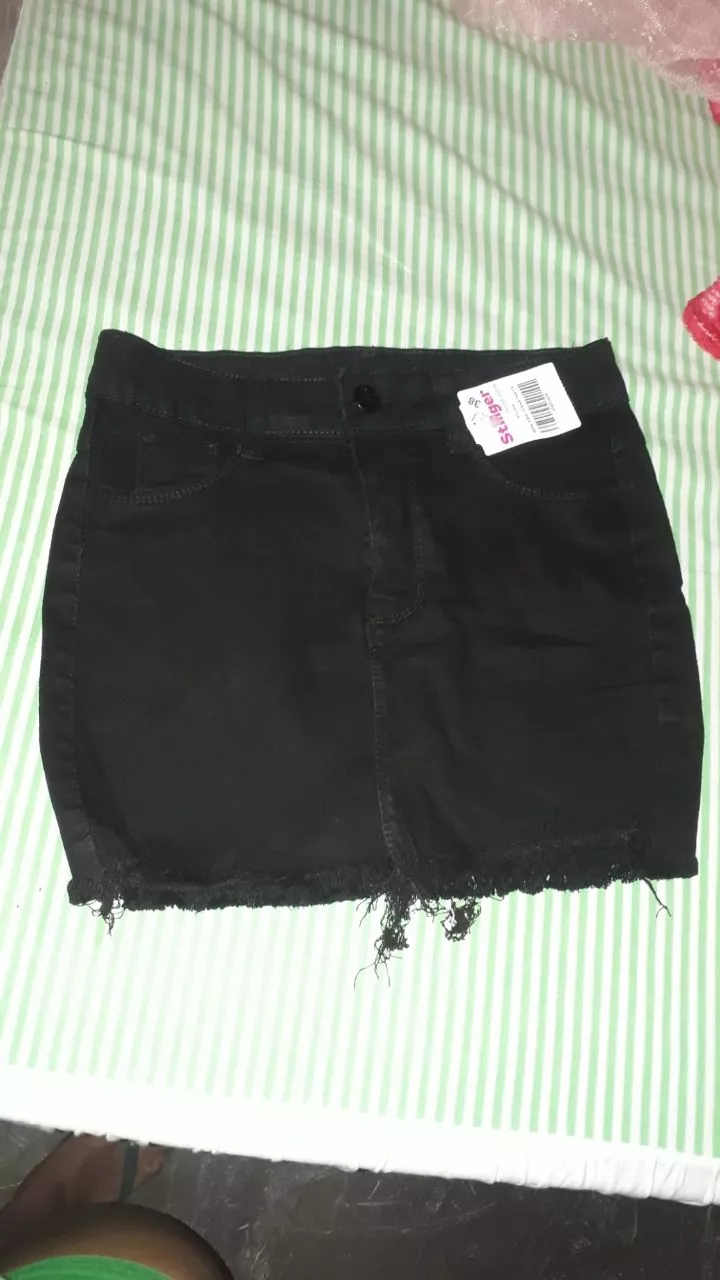 1 Saia Jeans Preta Feminina Cintura Alta Com Lycra
