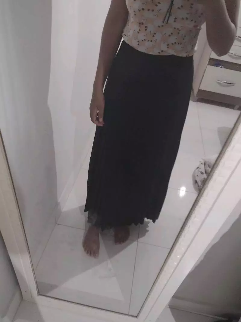 Confeccionada em helanca super leve com elastano forrada possui modelagem com elástico na cintura Saia Longa Plissada é uma peça super versátil pode ser combinado com vários estilos