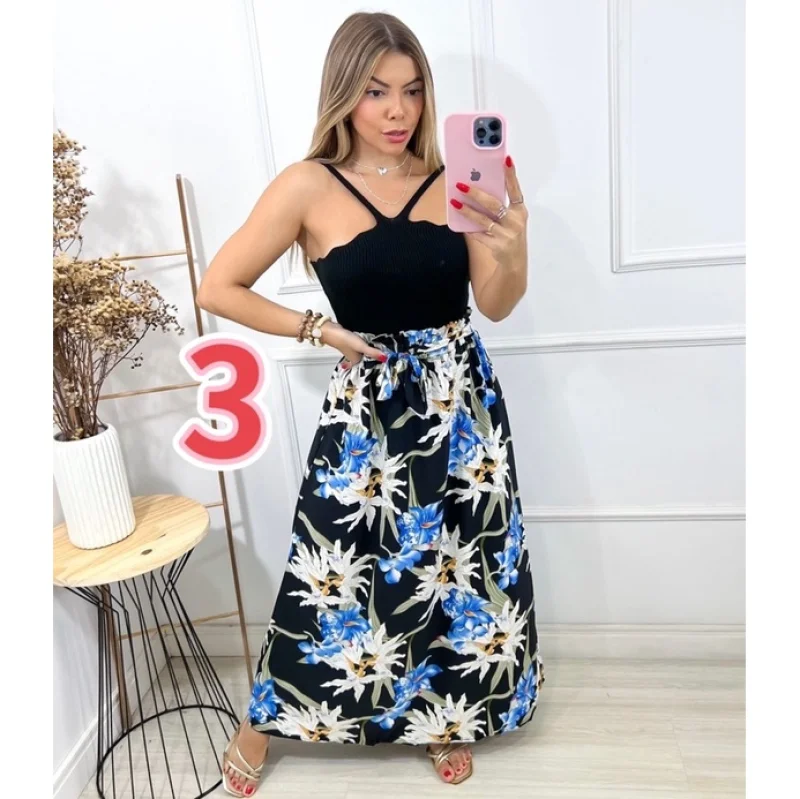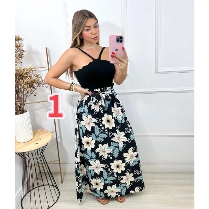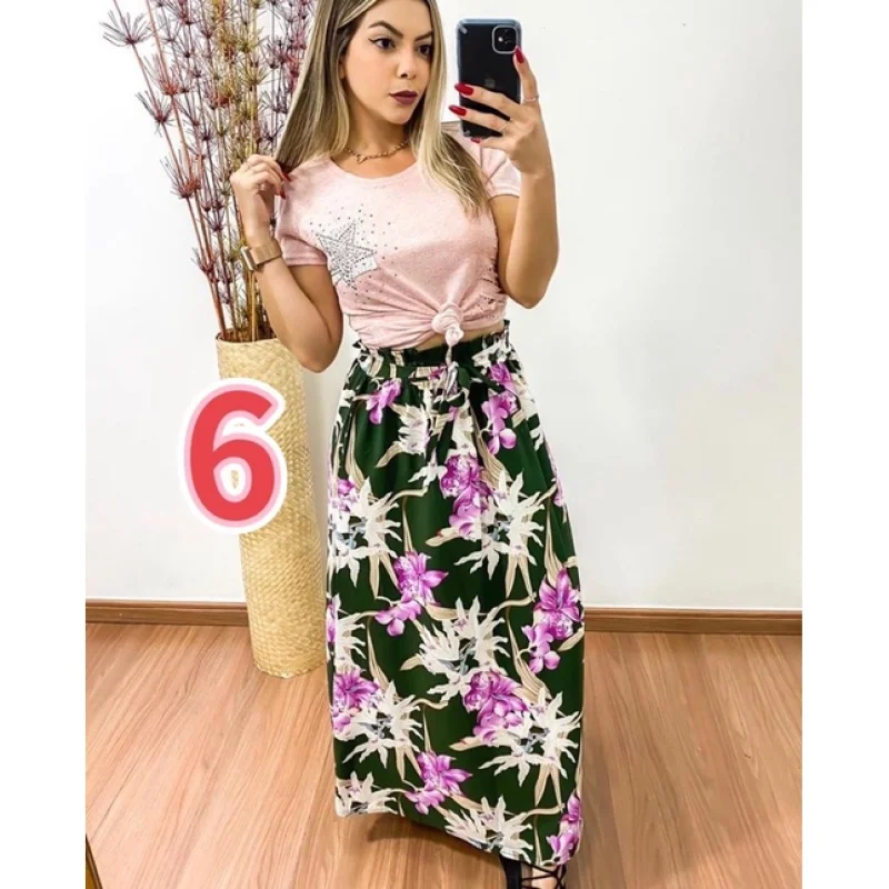 Compre a linda saia longa feminina com estampa floral na loja online da Raryel Moda. Aproveite nossos preços baixos e promoções exclusivas para garantir um look elegante e moderno. Desfrute do conforto e estilo dessa peça versátil, perfeita para diversas ocasiões.