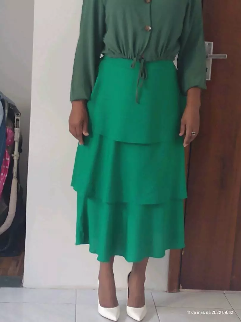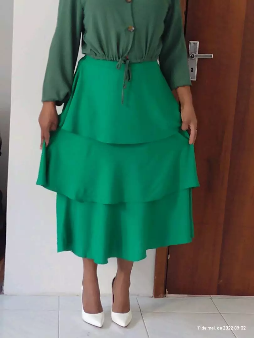 Compre a saia midi com elástico na cintura e 3 babados na loja online de roupas Raryel. Aproveite nossos preços baixos, promoções e descontos exclusivos!